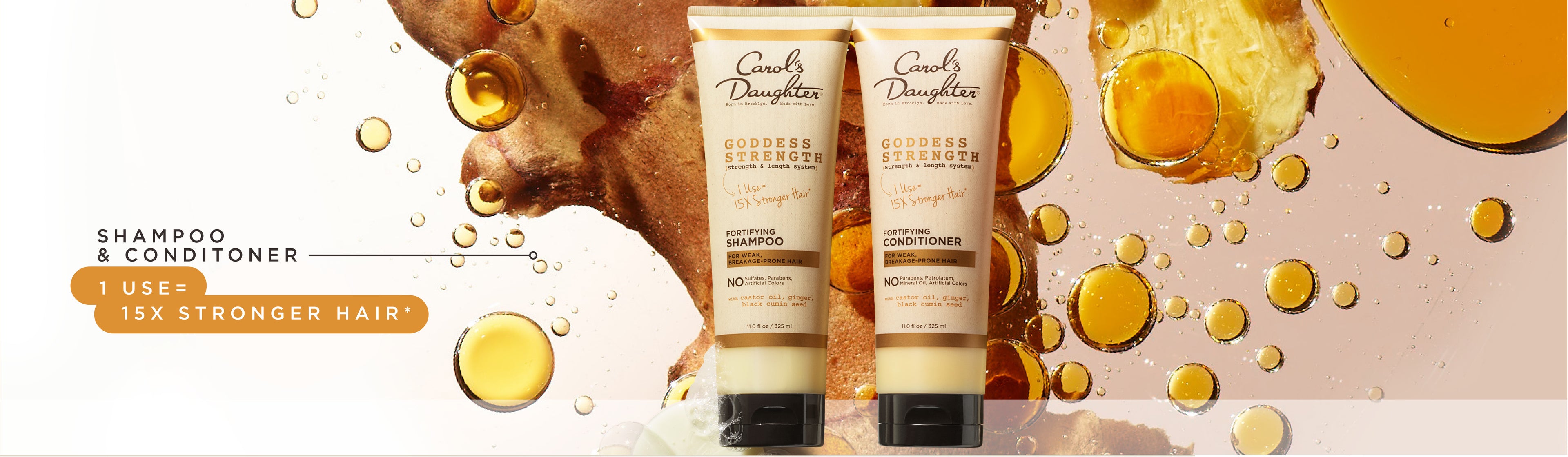 A fortifying shampoo fit for a goddess. Strengthen weak hair from the first wash with Carol’s Daughter Goddess Strength Fortifying Sulfate Free Shampoo. Blended with Castor Oil, Black Cumin Seed Oil and Ginger, this formula for dry hair cleanses while it moisturizes, for strands that are instantly stronger, less prone to breakage and healthy-looking. This shampoo is a part of our Goddess Strength System, which delivers 15X stronger hair in one use, 94% less breakage*, and supports the strength of your hair as it gets longer. Complete your regimen with the Fortifying Conditioner, Anti Breakage Hair Oil and Leave In Conditioner.